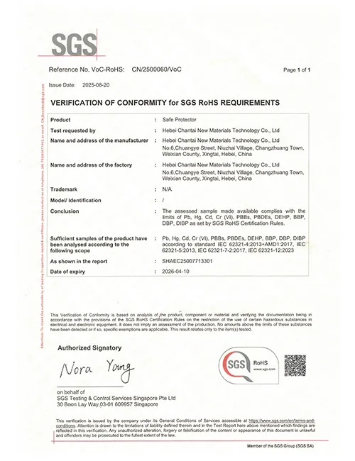 Informe de inspección ROHS de la cubierta protectora de cincha hueca de nailon