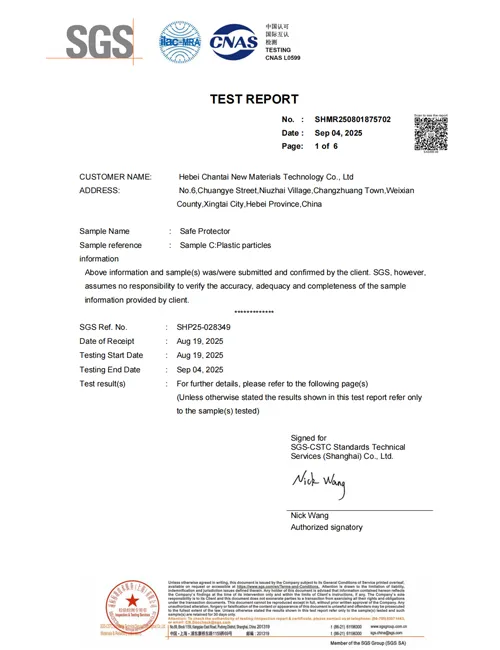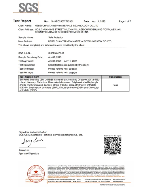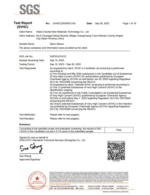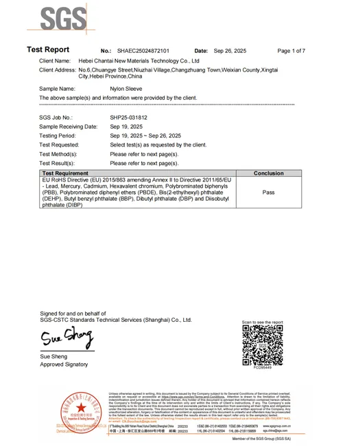 Informe de prueba REACH de cubierta protectora de cincha hueca de nailon